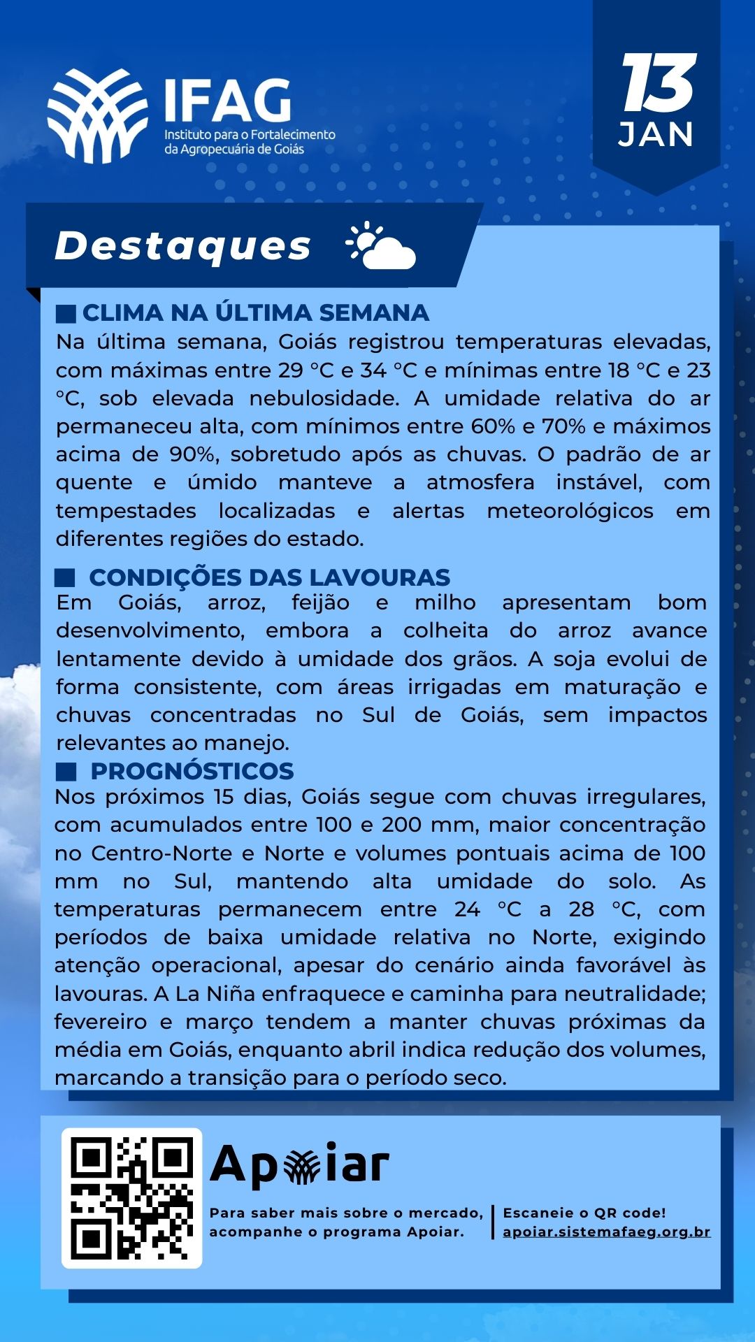 🌧🌞Destaques do Boletim Agroclimático – 13/01/2025 | IFAG