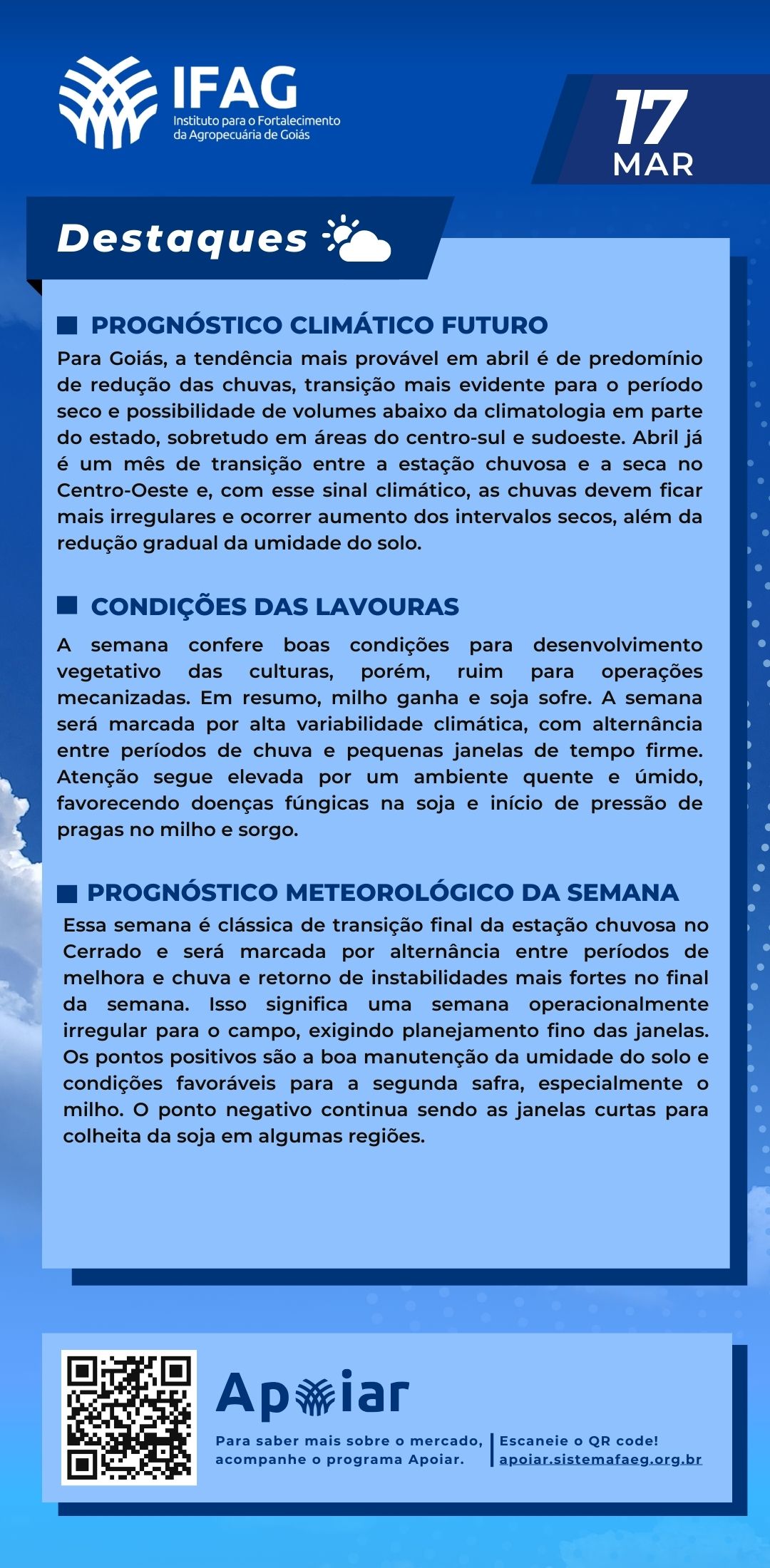 🌧🌞Destaques do Boletim Agroclimático – 17/03/2026 | IFAG