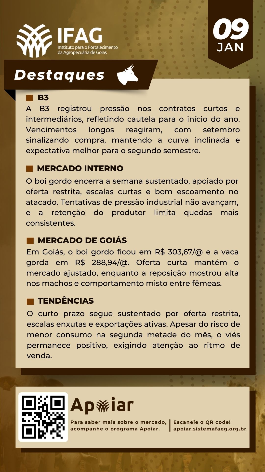 🐂 Destaques do Mercado do Boi Gordo em Goiás – 09/01/2026 | IFAG