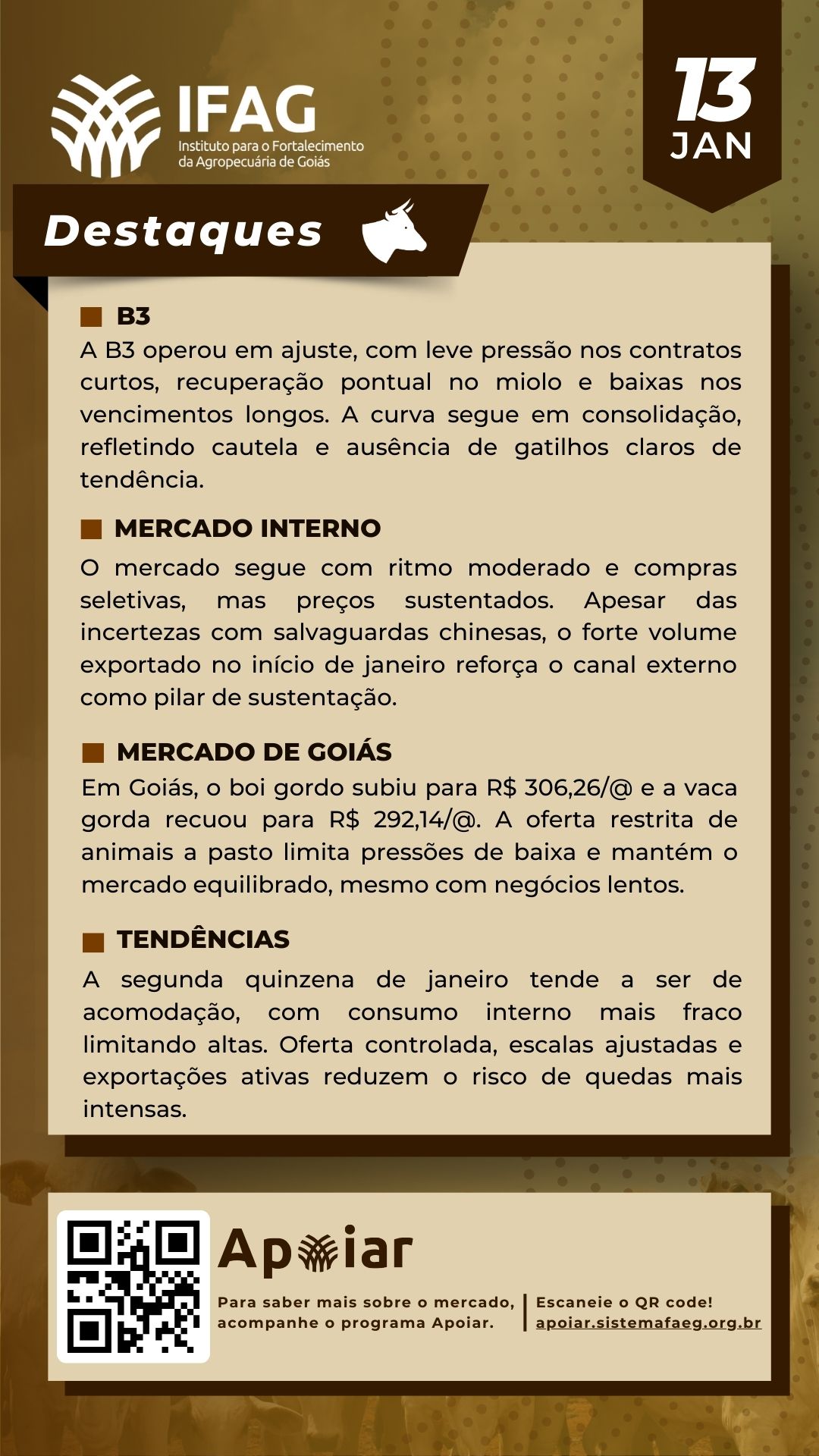 🐂 Destaques do Mercado do Boi Gordo em Goiás – 13/01/2026 | IFAG