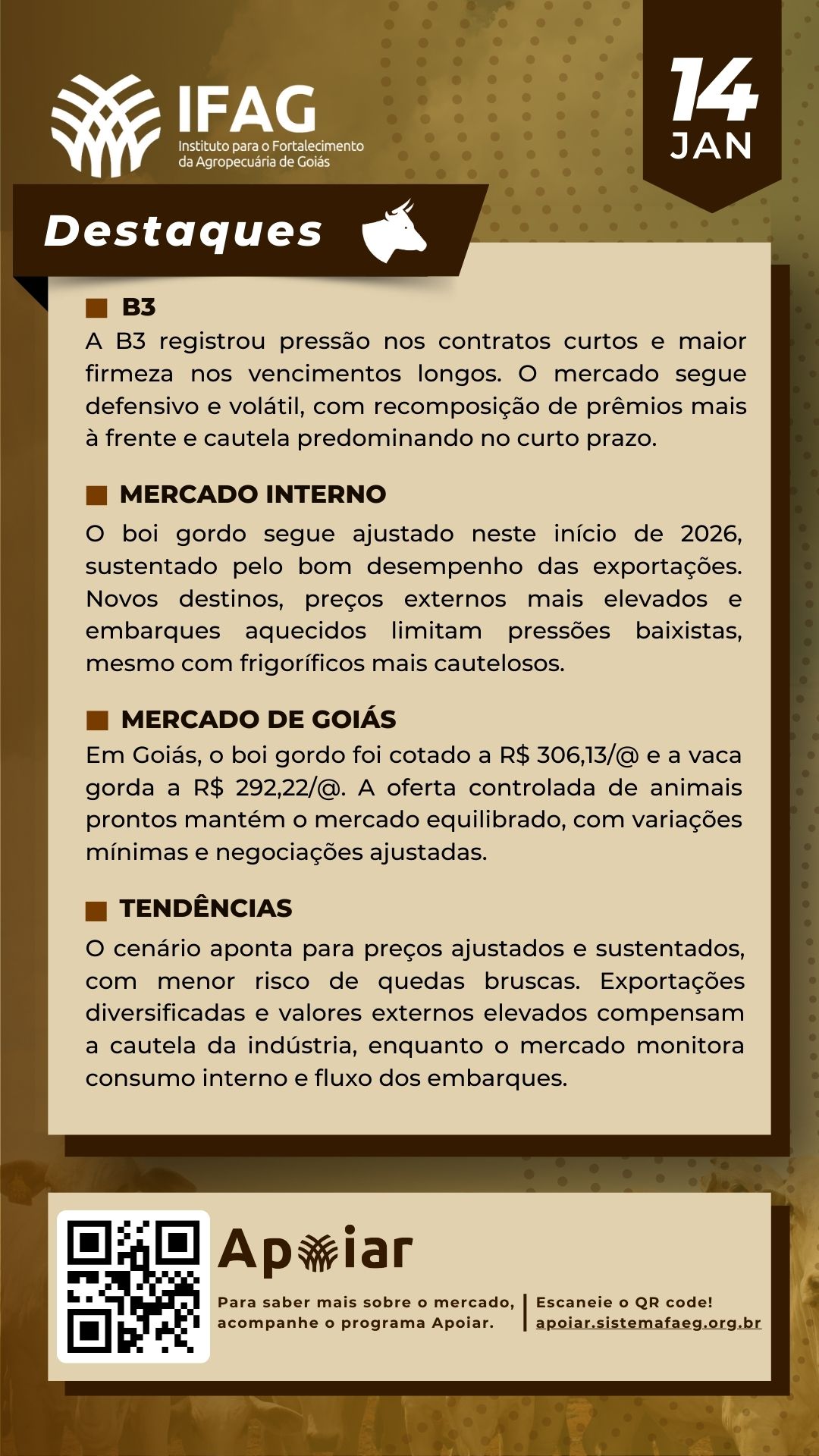 🐂 Destaques do Mercado do Boi Gordo em Goiás – 14/01/2026 | IFAG