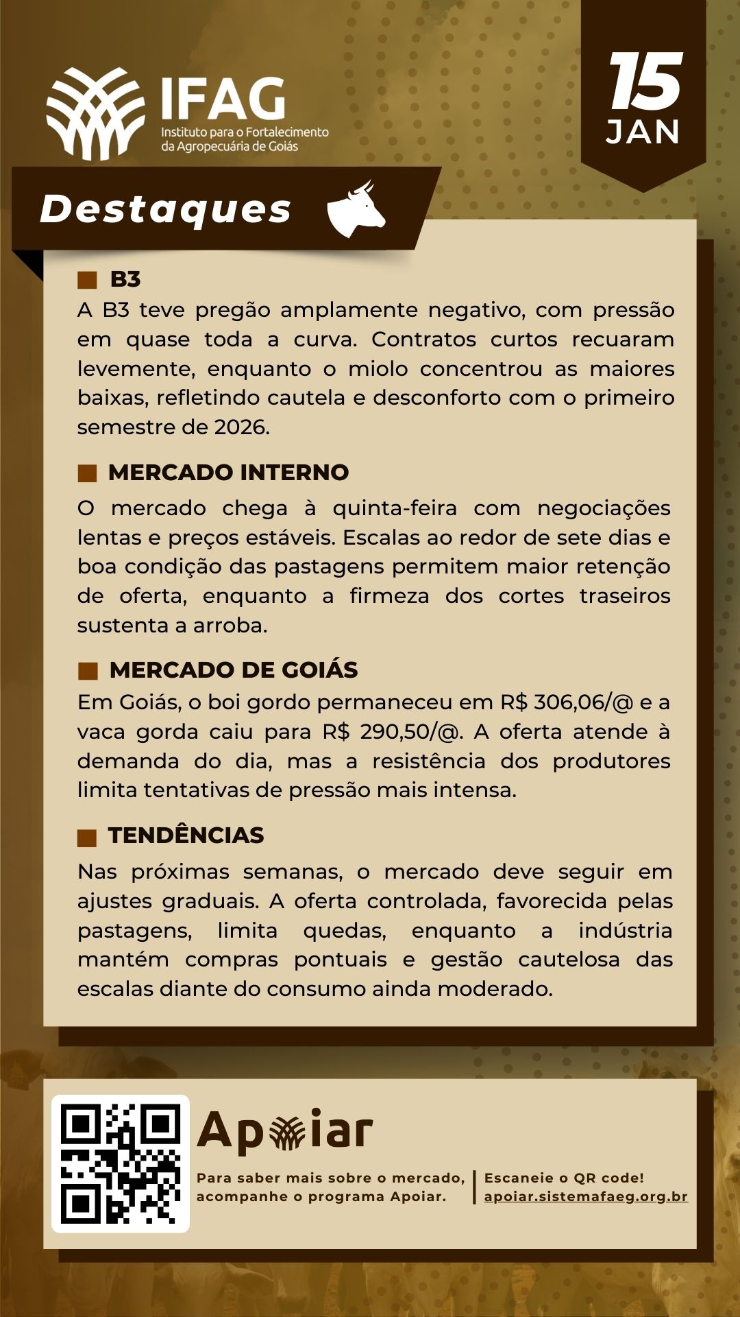 🐂 Destaques do Mercado do Boi Gordo em Goiás – 15/01/2026 | IFAG