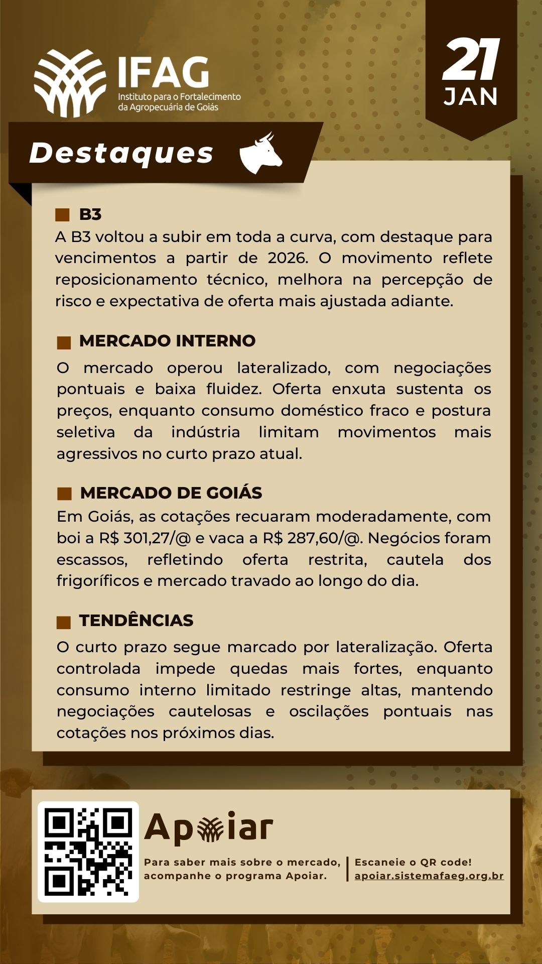 🐂 Destaques do Mercado do Boi Gordo em Goiás – 21/01/2026 | IFAG