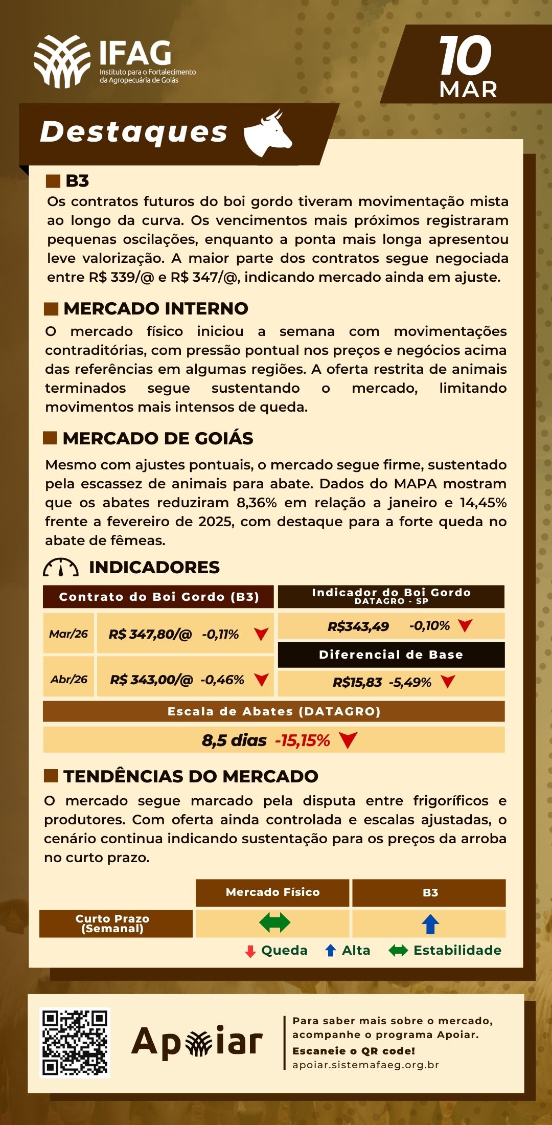 🐂 Destaques do Mercado do Boi Gordo em Goiás – 10/03/2026 | IFAG