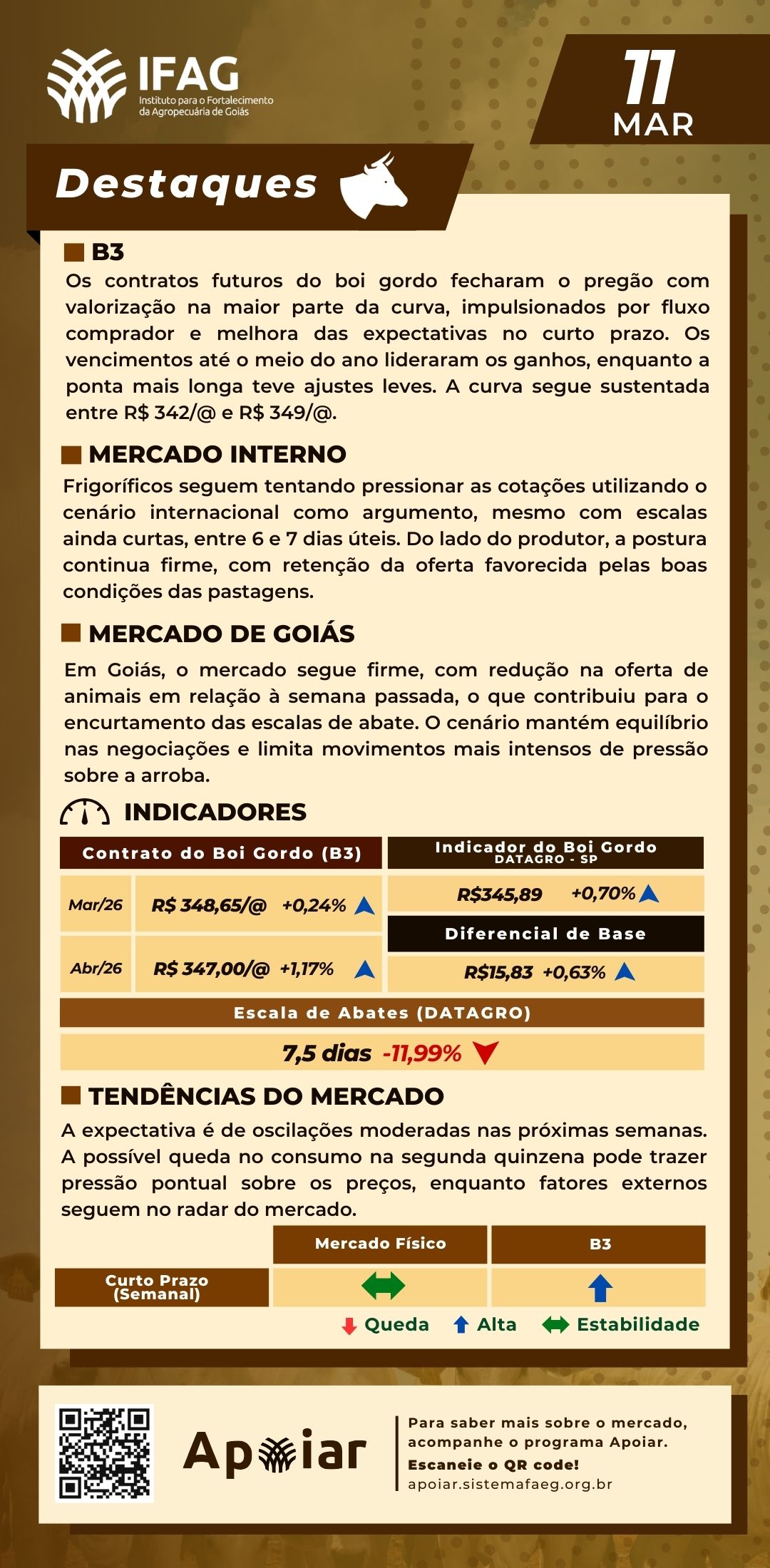 🐂 Destaques do Mercado do Boi Gordo em Goiás – 11/03/2026 | IFAG