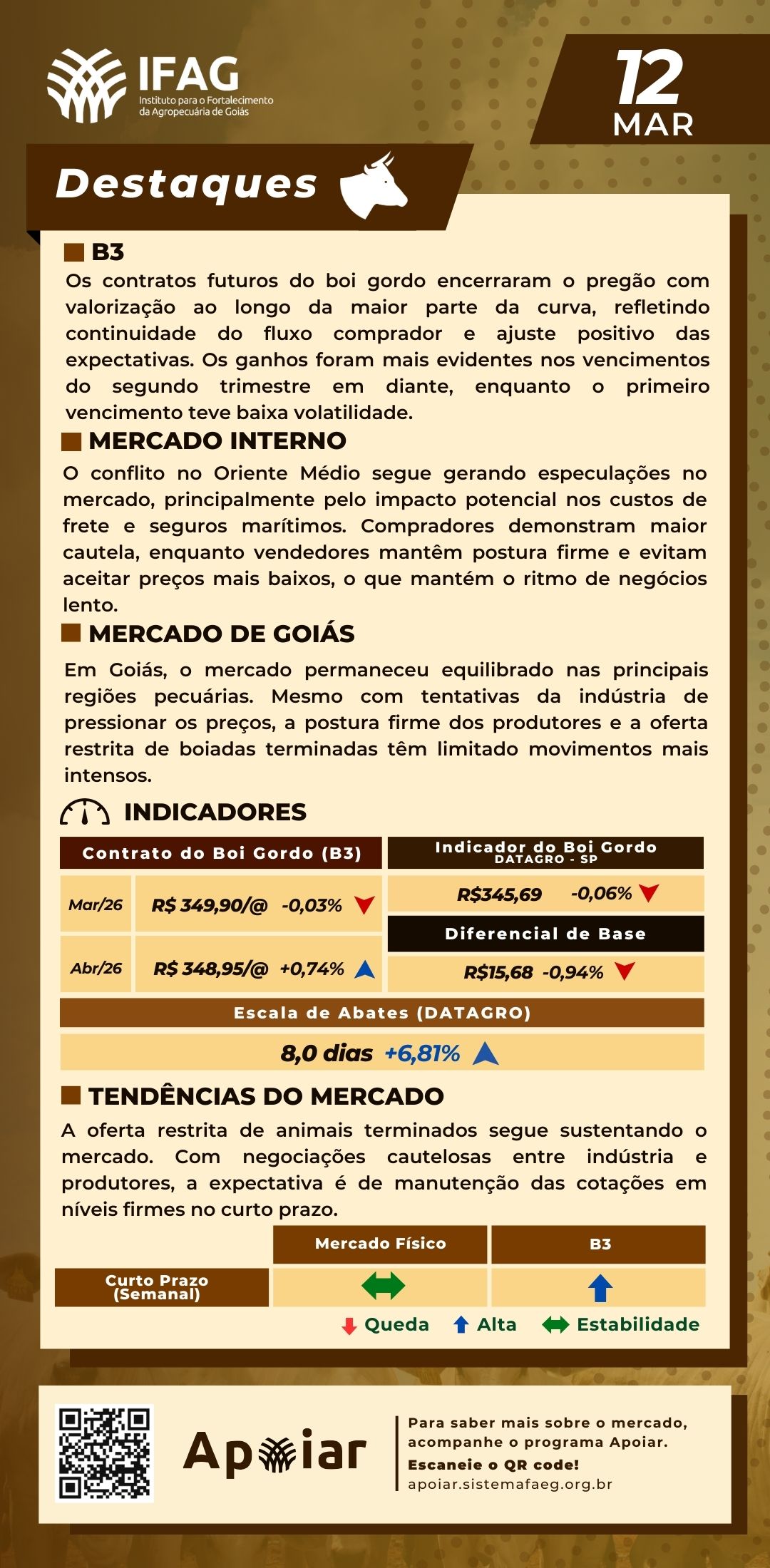 🐂 Destaques do Mercado do Boi Gordo em Goiás – 12/03/2026 | IFAG