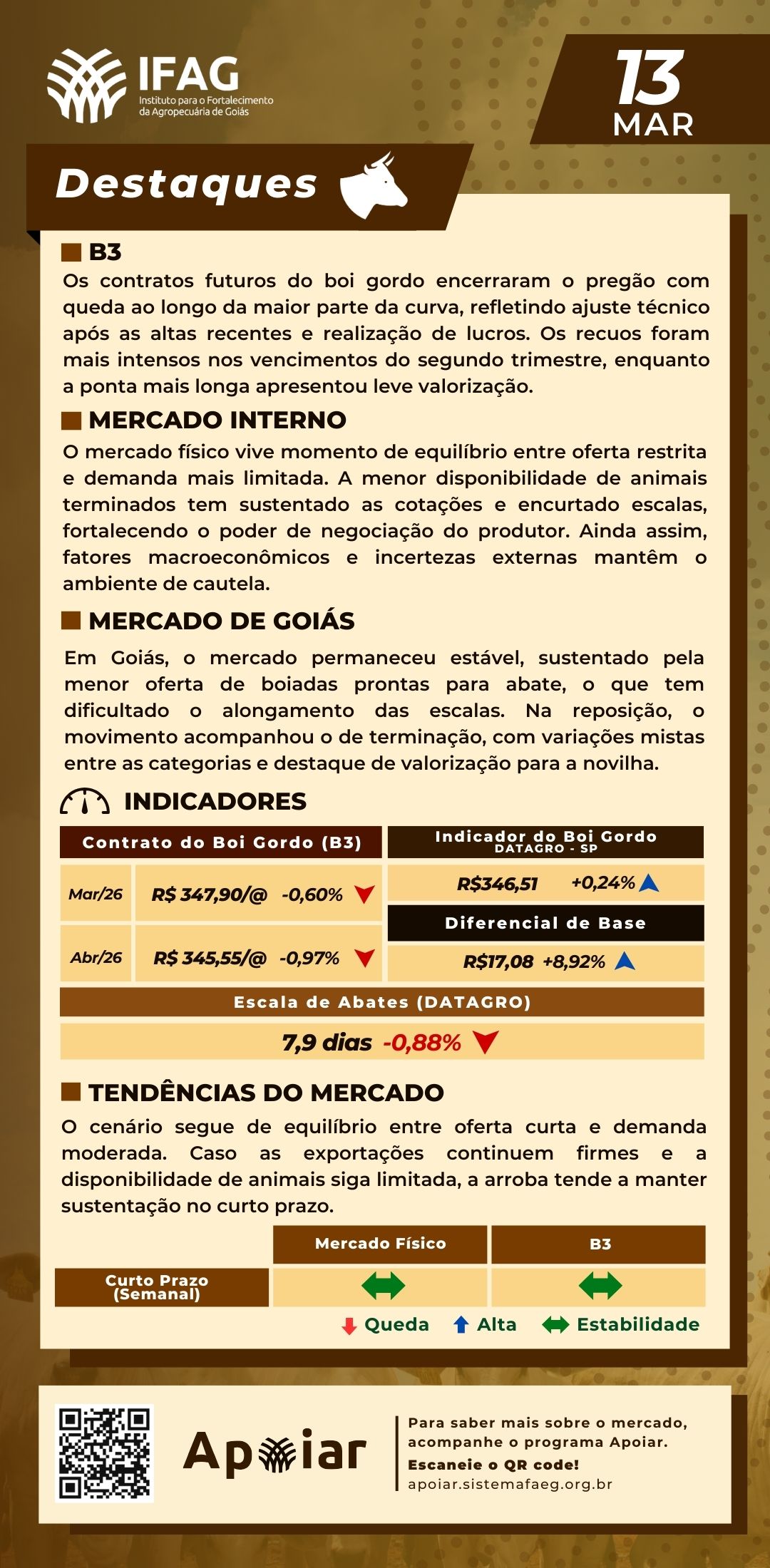 🐂 Destaques do Mercado do Boi Gordo em Goiás – 13/03/2026 | IFAG