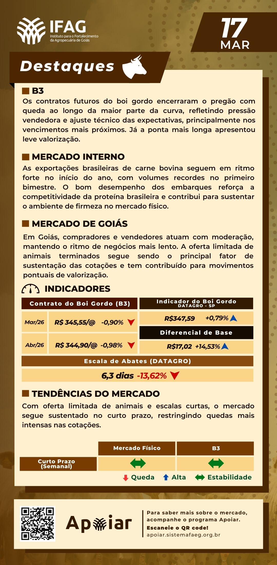 🐂 Destaques do Mercado do Boi Gordo em Goiás – 17/03/2026 | IFAG