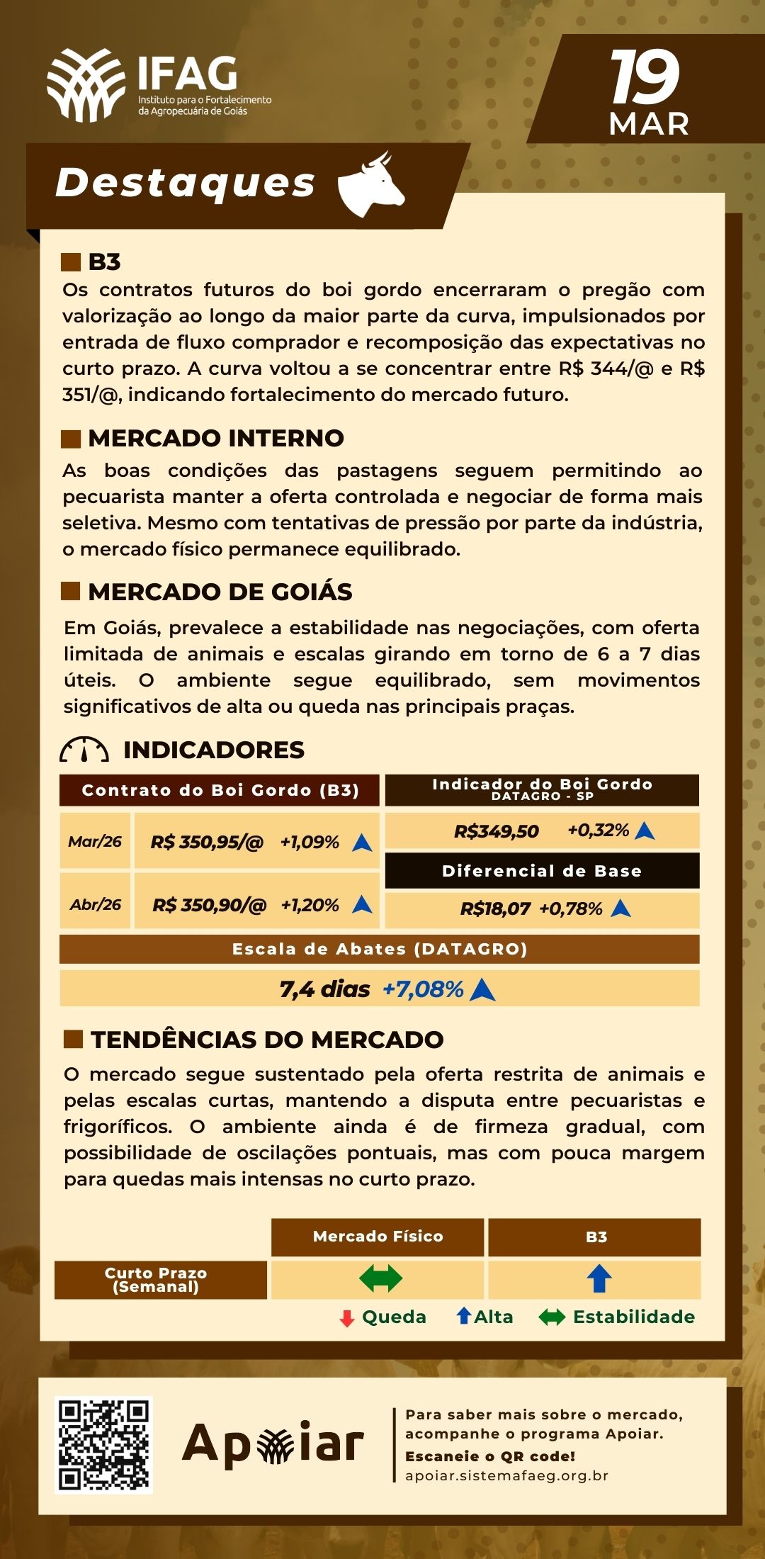 🐂 Destaques do Mercado do Boi Gordo em Goiás – 19/03/2026 | IFAG