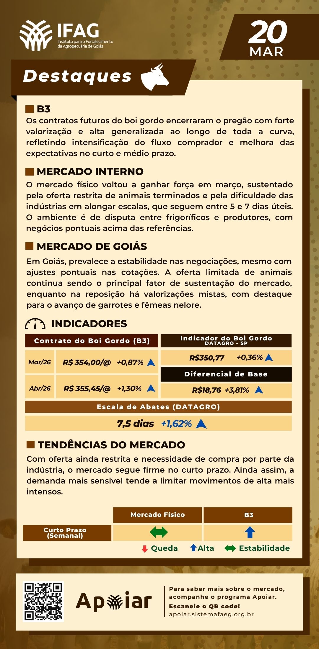 🐂 Destaques do Mercado do Boi Gordo em Goiás – 20/03/2026 | IFAG