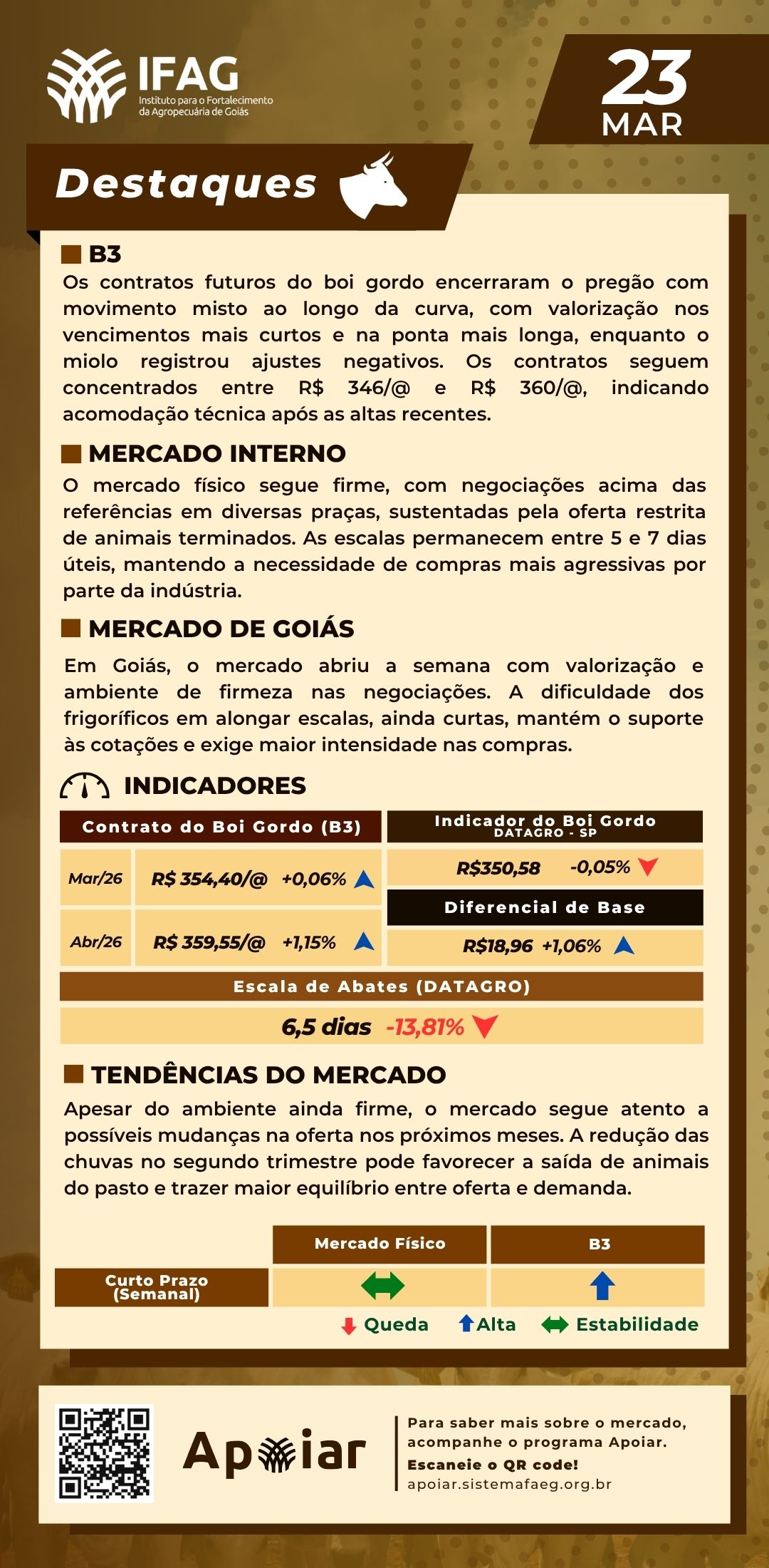 🐂 Destaques do Mercado do Boi Gordo em Goiás – 23/03/2026 | IFAG