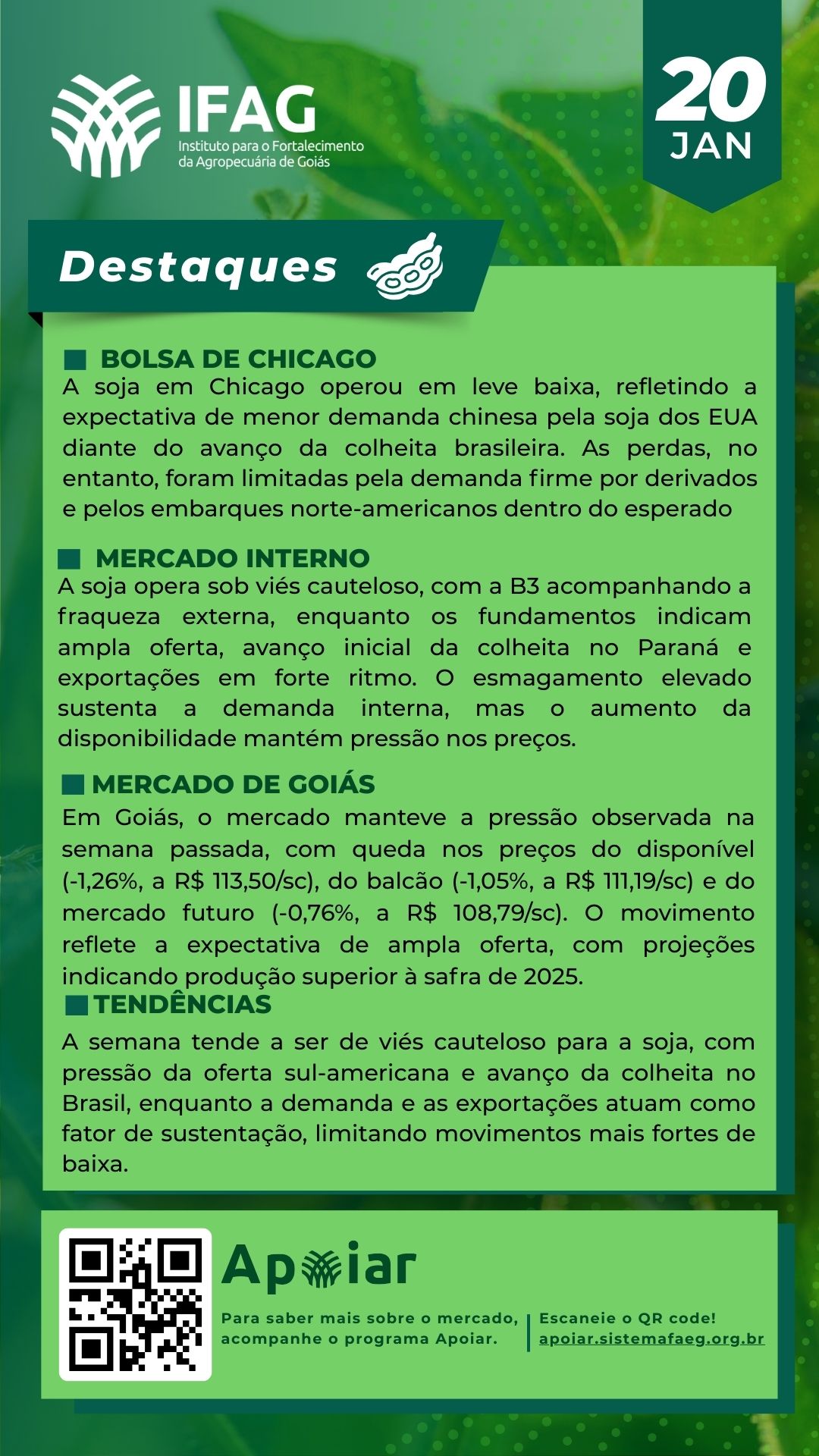 🌱 Destaques do Mercado da Soja em Goiás – 20/01/2025 | IFAG